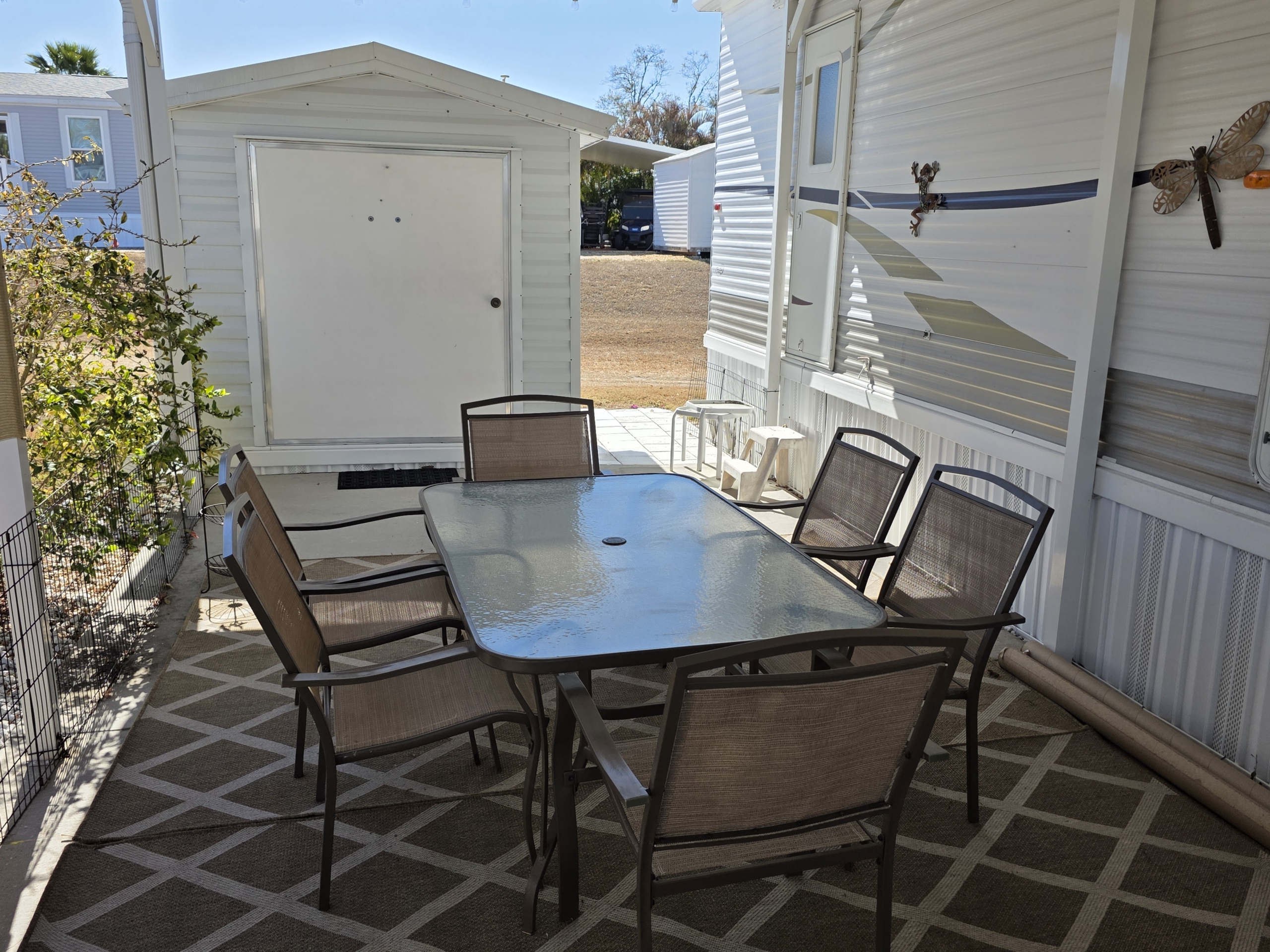 - Patio has nice area rug and patio furniture