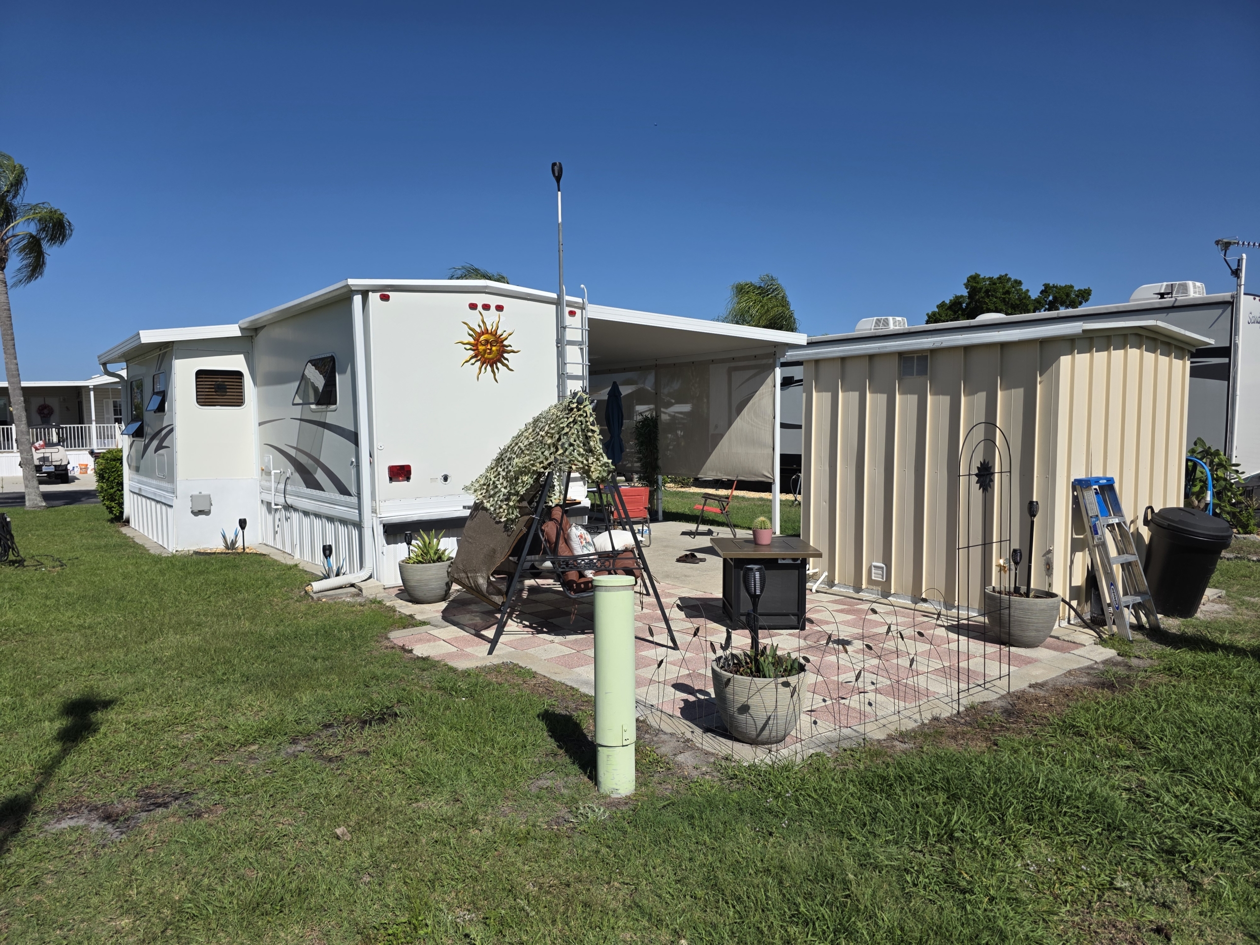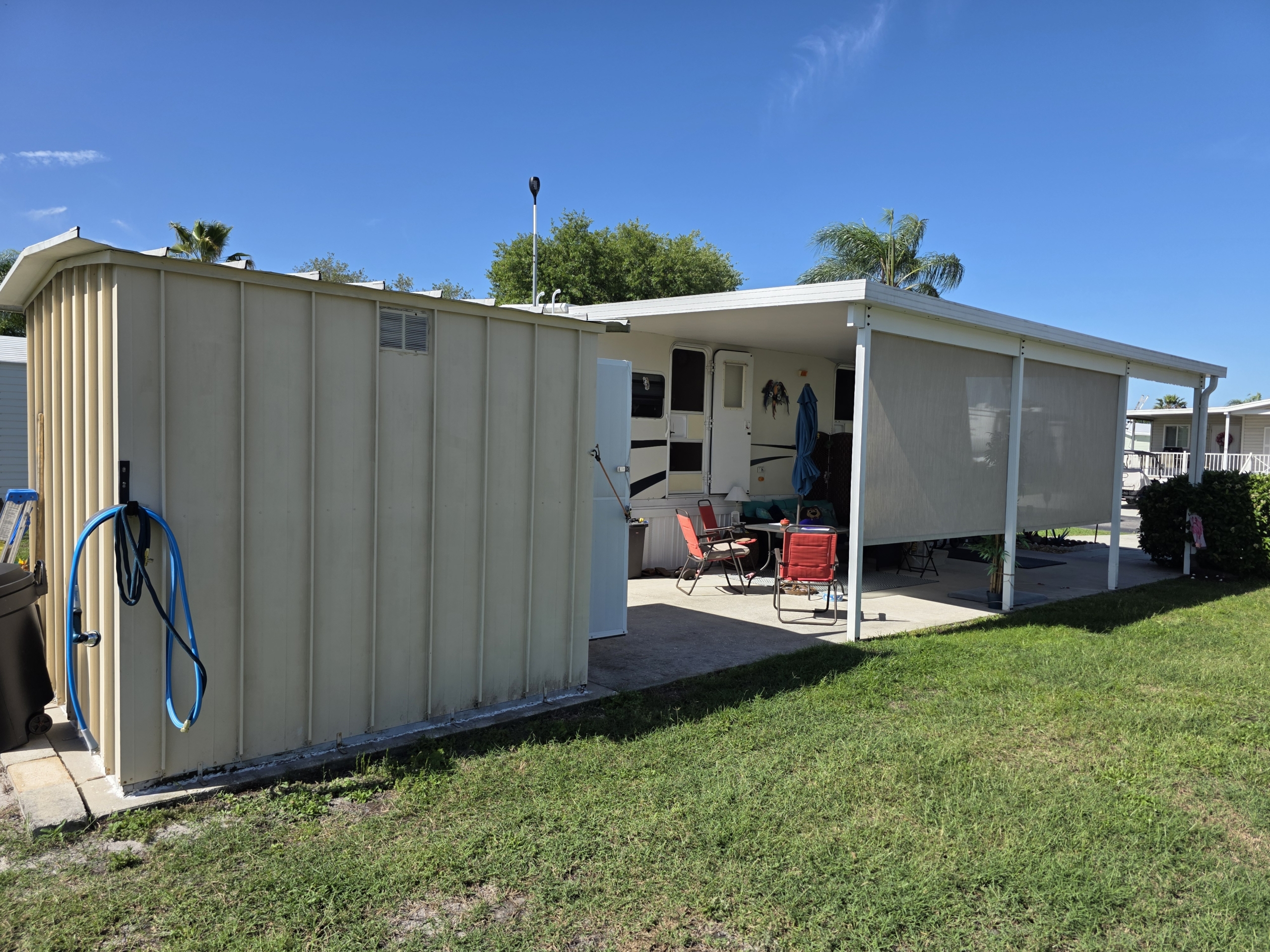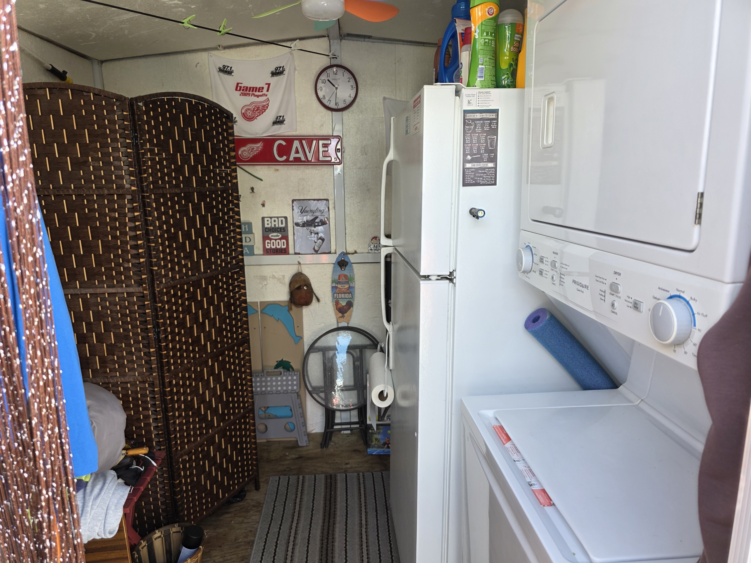 - Nice Shed with full-size Refrigerator/Freezer, Washer, and Dryer
