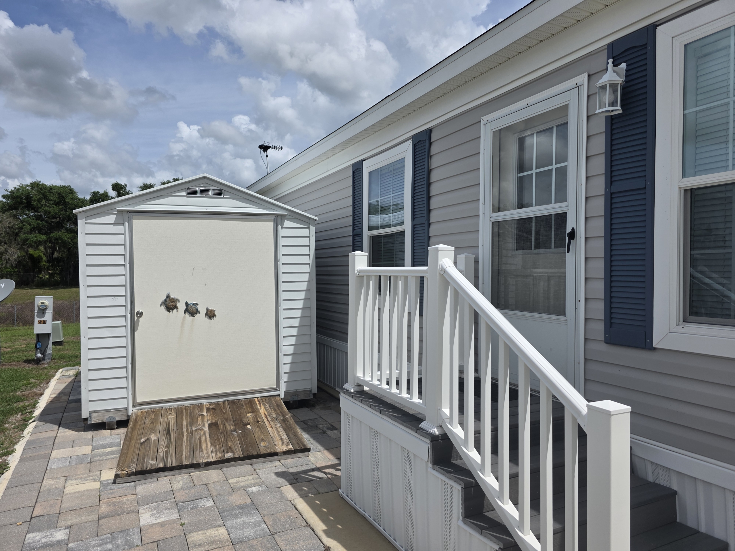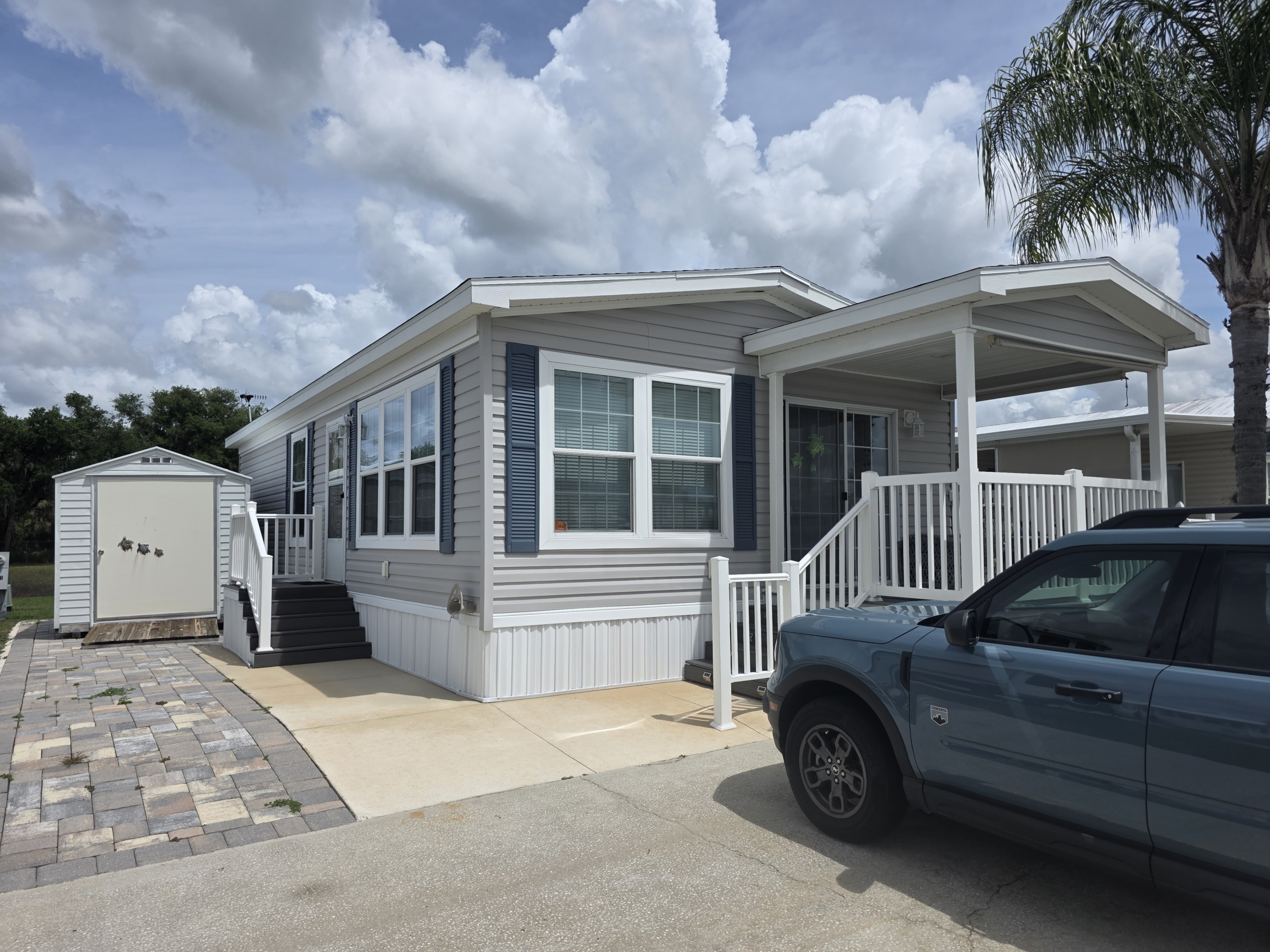 - Unit comes with an 8 x 10 Shed and ramp for Golf Cart Parking