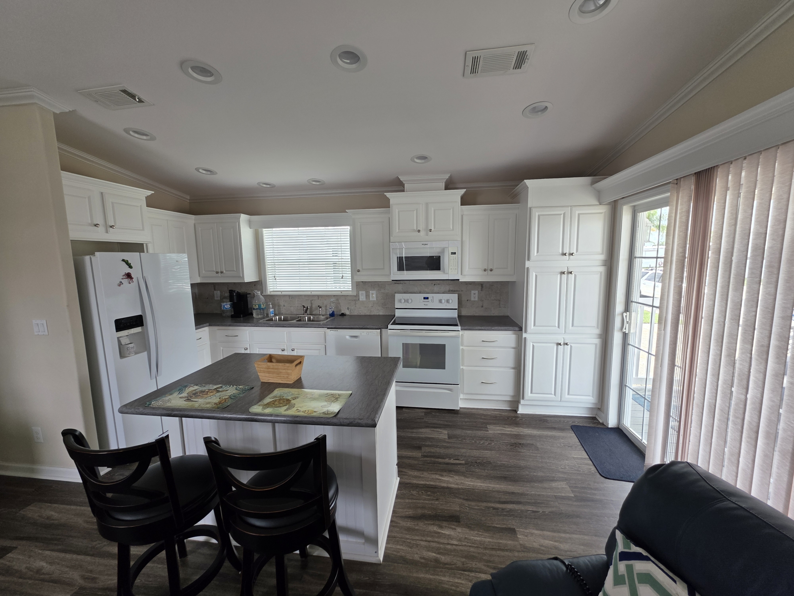 - The Kitchen has an Island, Dishwasher, Disposal, and lots of Counter Tops